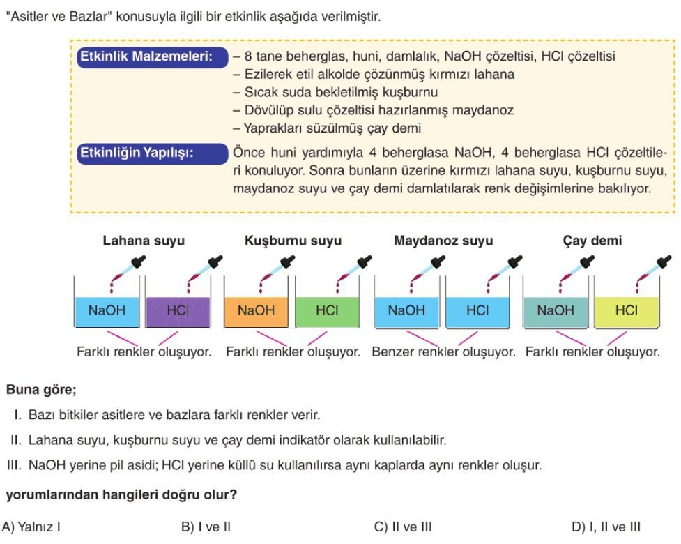 📝8. Sınıf Asitler ve Bazlar Test 1