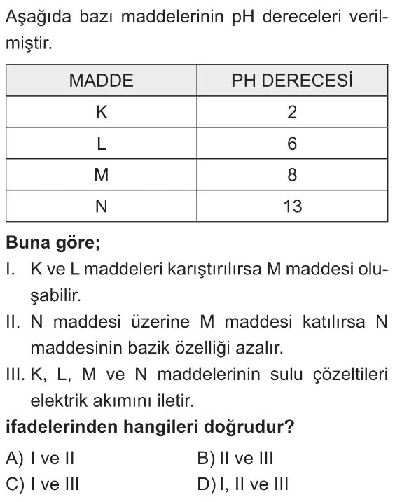 📝8. Sınıf Asitler ve Bazlar Test 13