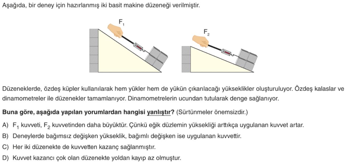 8. Sınıf Basit Makineler Ünite Değerlendirme Test 14