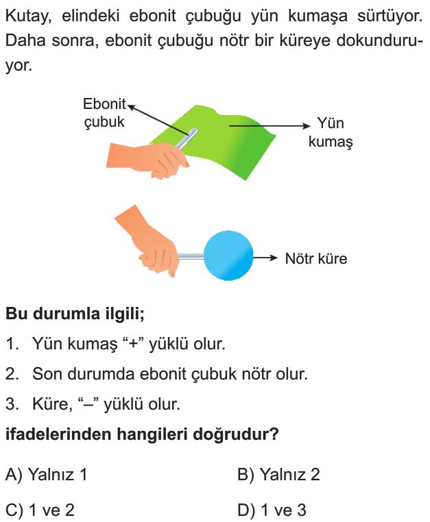 8. Sınıf Elektrik Yükleri ve Elektriklenme Test 7