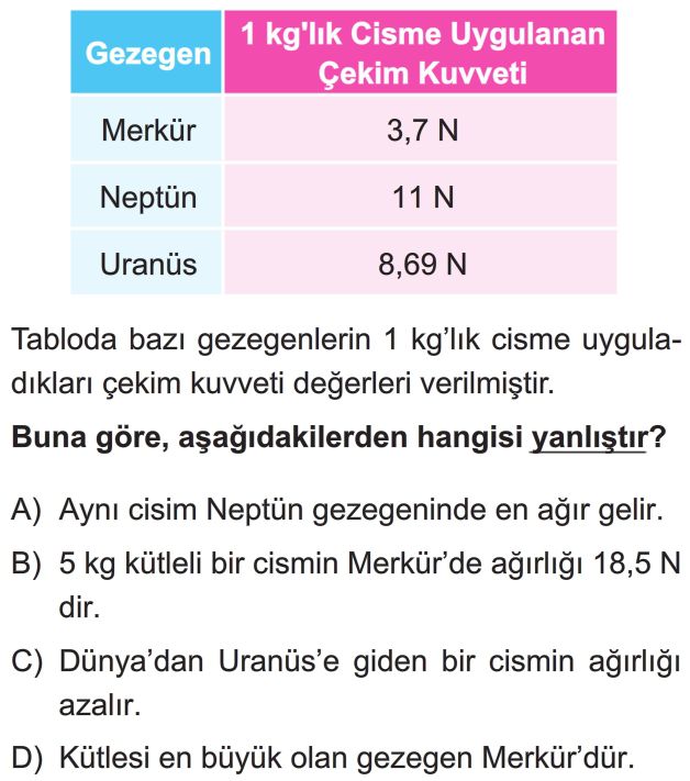 📝7. Sınıf Kütle ve Ağırlık İlişkisi Test 7