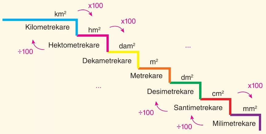 - $5 \text{ m}^2$’yi $\text{dm}^2$’ye çevirme:
