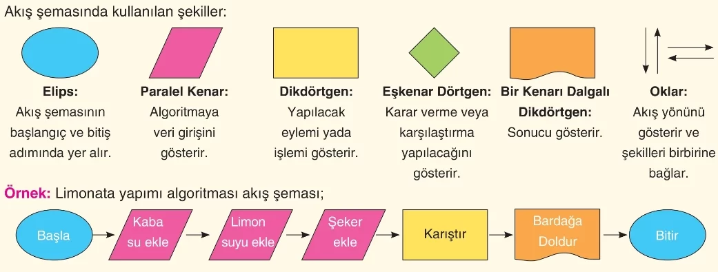 Bir algoritmanın işlem basamaklarını geometrik şekillerle gösterilmesine akış şeması denir.