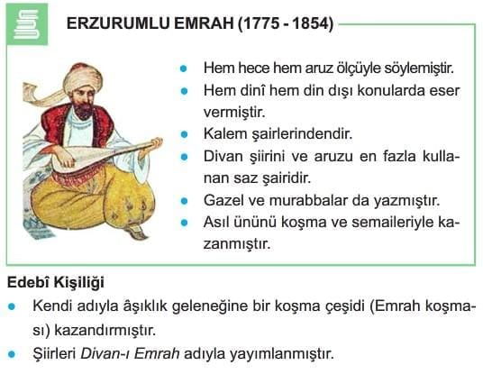 - Türk edebiyatının tanınmış koşma şairleri Karacoğlan, Bayburtlu Zihni, Aşık Ömer ve Erzurumlu Emrah’tır.