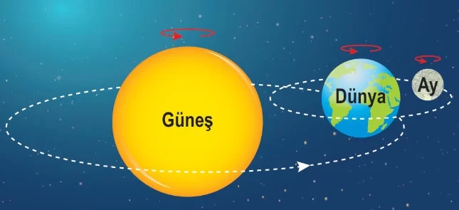 - Ay’ın 3 farklı hareketi bulunur. Ay’ın kendi etrafında dönme süresi ile Dünya’nın etrafında dolanma süresi yaklaşık 27,3 gündür. Ayrıca Dünya ile birlikte Güneş’in etrafında yaklaşık 365 günde dolanma hareketi yapar.