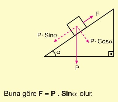 Eğik düzlem kuvvetten kazanç sağlamak için kullanılır.