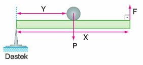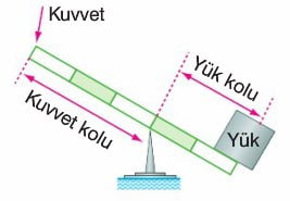 Yukarıda görüldüğü gibi sabit bir destek etrafında dönebilen çubuklardan oluşan araçlara “kaldıraç” denir. Tork ilkesine göre kaldıraç denklemi, kuvvet x kuvvet kolu = Yük x Yük kolu şeklinde yazılır.