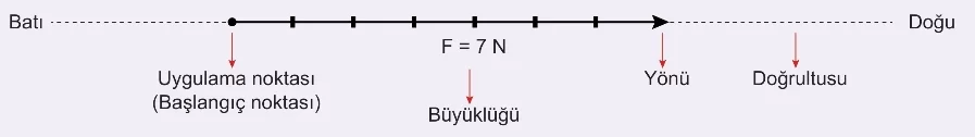 | $F_1$ | Doğu | Batı – Doğu | $5 \text{ N}$ |