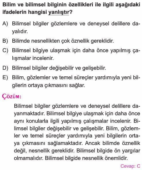 Bilimsel Bilginin Doğası ve Biyoloji 9. sınıf konu anlatımı ders notu çözümlü sorular