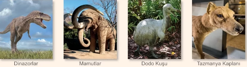 - Dünyada nesli tükenmiş bazı canlılar aşağıda verilmiştir.