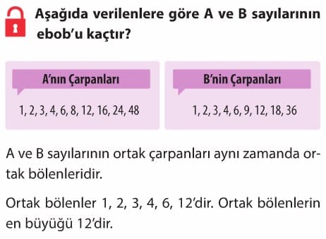 Cevap: 24 ve 36 sayılarının EBOB’u 12, EKOK’u 72’dir.