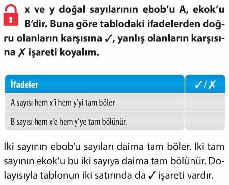 Çözüm: 40 ve 64 sayılarının EBOB’u 8, EKOK’u ise 160’tır.