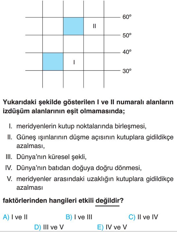 İrem: Aynı değildir; çünkü aynı meridyen üzerindeki yerlerden kutuplara yakın olan yere Güneş ışınları daha eğik açıyla gelir.