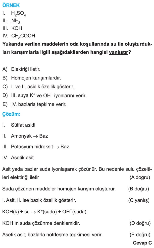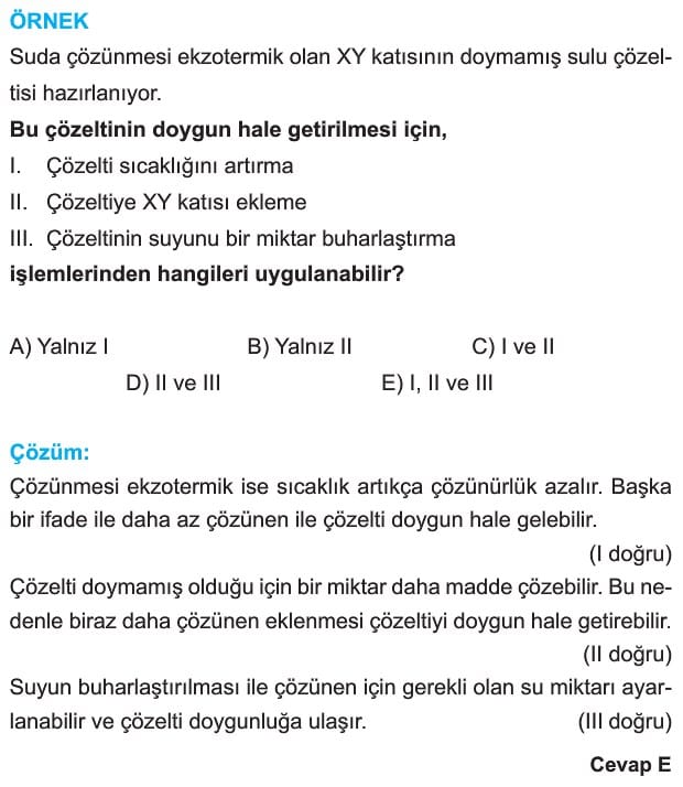 Çözüm: Sıcaklık arttıkça, çözücü moleküllerinin kinetik enerjisi artar ve bu da çözünme hızını artırır. Bu nedenle sıcak su, oda sıcaklığındaki suya göre daha hızlı çözündürme sağlar. Cevap A.
