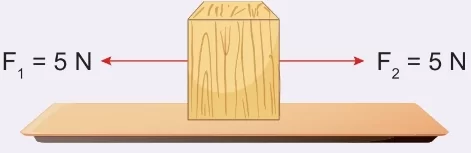 Zıt yönde ve eşit büyüklükteki kuvvetlerin bileşkesi: $F_{\text{net}} = 10 \text{ N} – 10 \text{ N} = 0 \text{ N}$’dur. Cisim dengelenmiş kuvvetlerin etkisindedir. Dengelenmiş kuvvet etkisindeki cisim duruyorsa, durmaya devam eder.