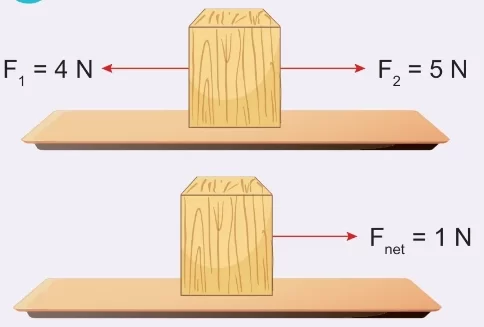 $F_{\text{net}}$ sıfırdan farklı olduğu için cisim dengelenmemiş kuvvetlerin etkisindedir. Bileşke kuvvetin yönü, büyük olan kuvvetin (Doğu yönündeki $15 \text{ N}$) yönüyle aynıdır. Cisim Doğu yönünde hareket etme eğilimindedir.
