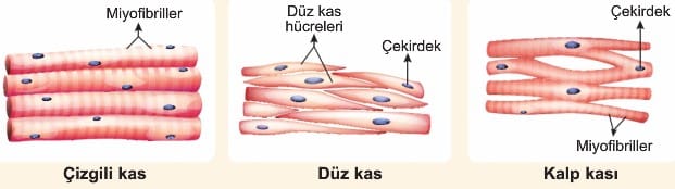 Kas hücrelerinin sitoplazmasında miyofibril denilen kasılıp gevşeme özelliğine sahip telcikler yer alır.