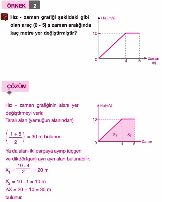 Çözüm: Alan hız değişimini (ΔV) verir. Aracın ilk hızı sıfır ve I. bölgede bir alan (hız değişimi) olduğundan aracın