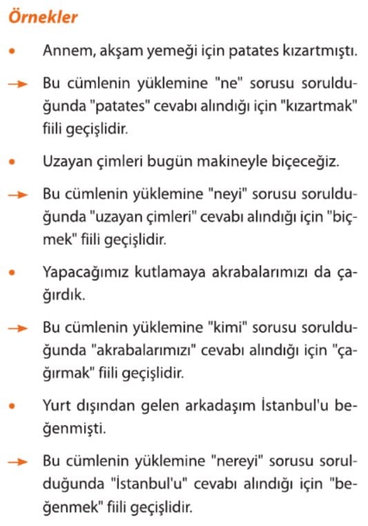 Geçişli ve Geçişsiz Fiiller 8. Sınıf Lgs Konu Anlatımı Nesnelerine göre Fiiller