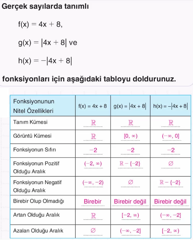 Gerçek Sayılarda Tanımlı Mutlak Değer Fonksiyonları ve Nitel Özellikleri 9. Sınıf Matematik
