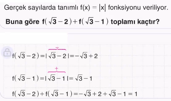 - Fonksiyonun iki farklı mutlak değer olduğu için kritik noktalarını belirliyor.