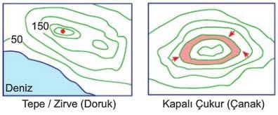 - İç içe kapalı eğrilerdir. Her eğri, kendisinden daha yüksek olan eğriyi kuşatır. En dıştaki eğri en alçak yeri, en içteki eğri ise en yüksek yeri gösterir.