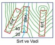 şeklinde girinti yapmışsa sırt ismini alır. Vadilerde izohipslerin sivri ucu akarsuyun kaynağını, açık ağzı ise akarsuyun akış yönünü gösterir.