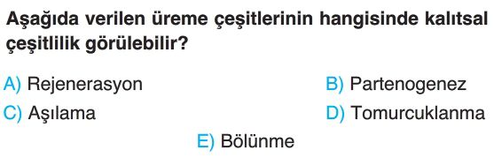 Soru: Verilen üreme şekli ve amaçları ile ilgili aşağıdakilerden hangisi söylenemez?