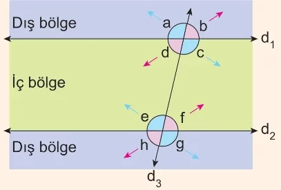 - b ile h, a ile g dış ters açılar ve açıların ölçüleri birbirine eşittir.