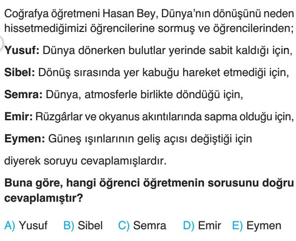 9. sınıf Dünya'nın Şekli ve Hareketleri Test 3 Çöz