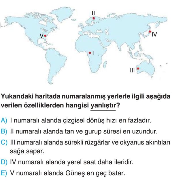 9. sınıf Dünya'nın Şekli ve Hareketleri Test 5 Çöz