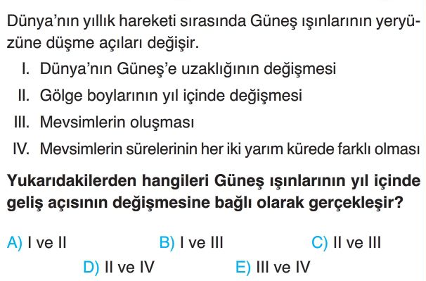 Soru: İki öğrenci mevsimlerin başlangıç tarihlerinden birinde yaşadıkları yerlerin gündüz ve gece uzunlukları ile ilgili aşağıdaki bilgileri vermişlerdir.