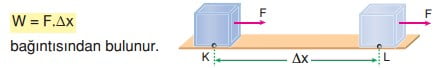 Yukarıda öğrendiğimiz gibi fiziksel anlamda iş yapabilmek için cisme yalnız kuvvet uygulamak yeterli değildir. Aynı zamanda cismin kuvvet doğrultusunda hareket etmesi gerekir.