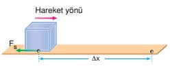 Şekildeki gibi hareket eden bir cisme etkiyen sürtünme kuvveti Fs kadar ise, yapılan iş,
