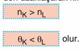 Şekil II deki gibi çok yoğun K ortamından az yoğun L ortamına tek renkli ışın gönderildiğinde normalden uzaklaşarak kırılır.