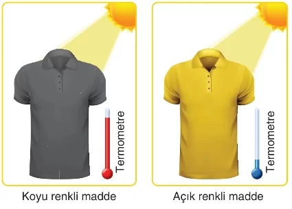 - Işığı fazla soğuran maddelerin sıcaklığı daha fazla artar.