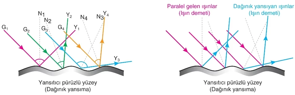 Yansıma kanunları sadece düzgün yüzeyler için değil pürüzlü yüzeyler için de geçerlidir.