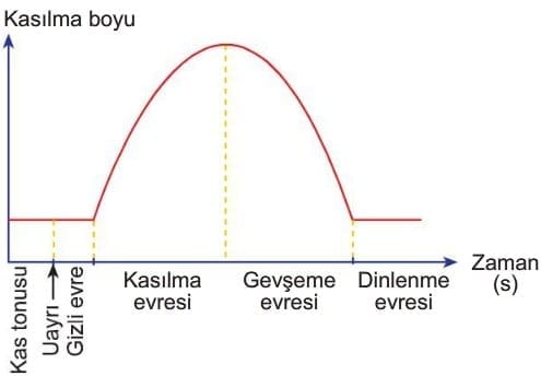Uyarılan bir kasın kasılıp gevşemesi dört evrede gerçekleşir :