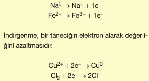 5. Redoks Tepkimeleri: Elektron alışverişinin olduğu tepkimelere redoks ya da yükseltgenme-indirgenme tepkimesi denir. Yükseltgenme, bir taneciğin elektron vererek değerliğini artırmasıdır.