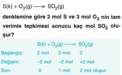 Tepkimeye giren maddelerden ikisinin de miktarına ilişkin bilgi verilmişse, tam verimli tepkimede iki olasılık vardır.