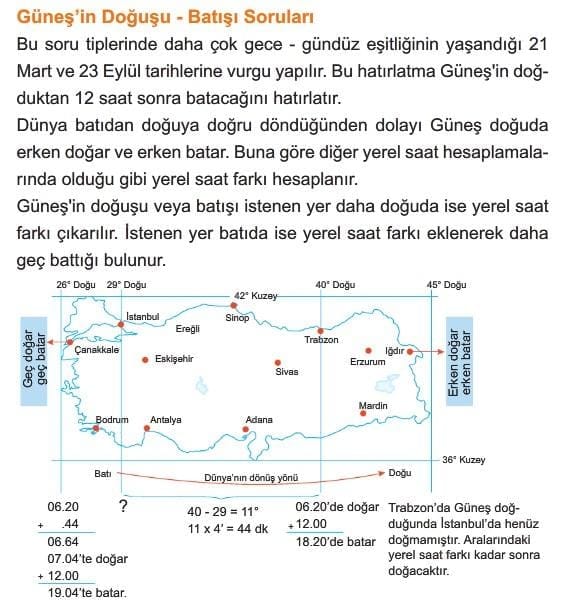 - 1o lik boylam farkı 4 dakika 15o x 4 dk = 60 dk —> 1 saattir.