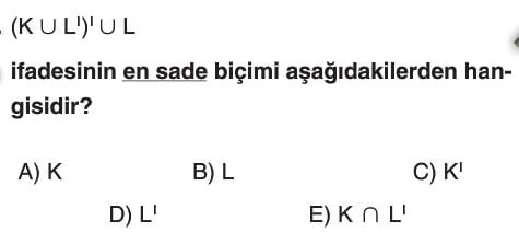 Konuya Geri Dön: Kümelerde Tümleme ve Fark İşlemi soruları test 5 soru 10