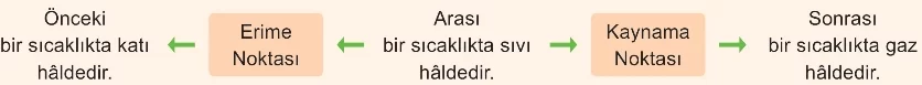 Erime (katıdan sıvıya) ve Kaynama/Buharlaşma (sıvıdan gaza) olaylarında madde çevrelerinden ısı alır.