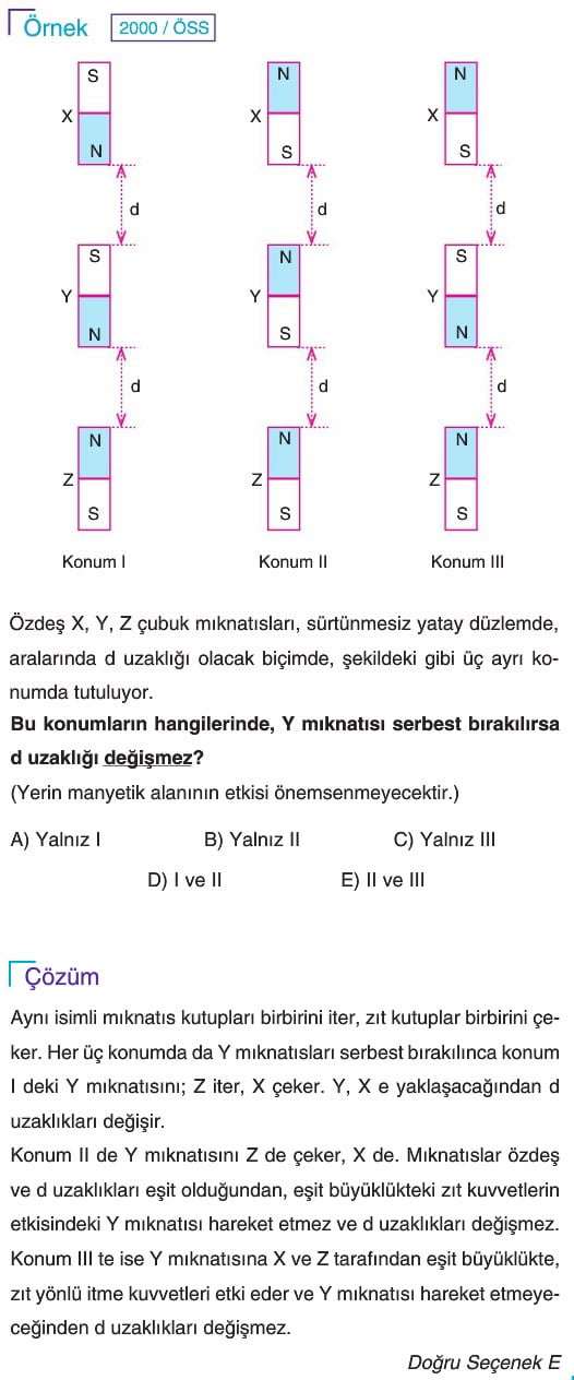 Şekil lll te bir çubuk mıknatıs demir çubuğa ortasından yaklaştırıldığında demir çubuk yine mıknatıslanmış olur.
