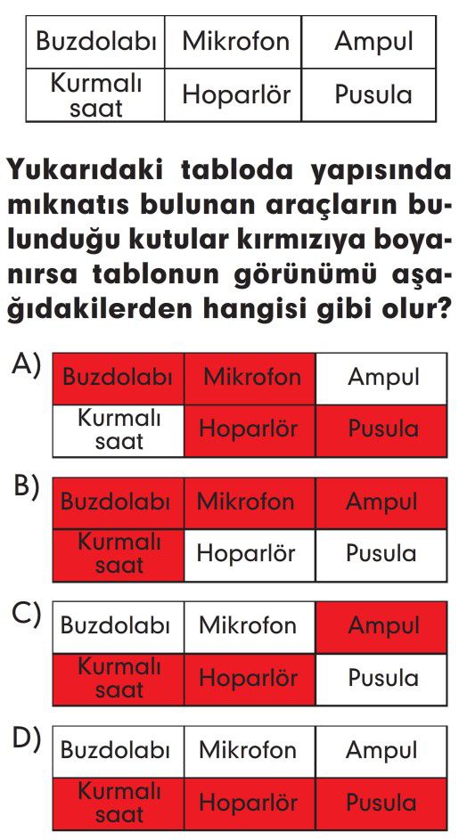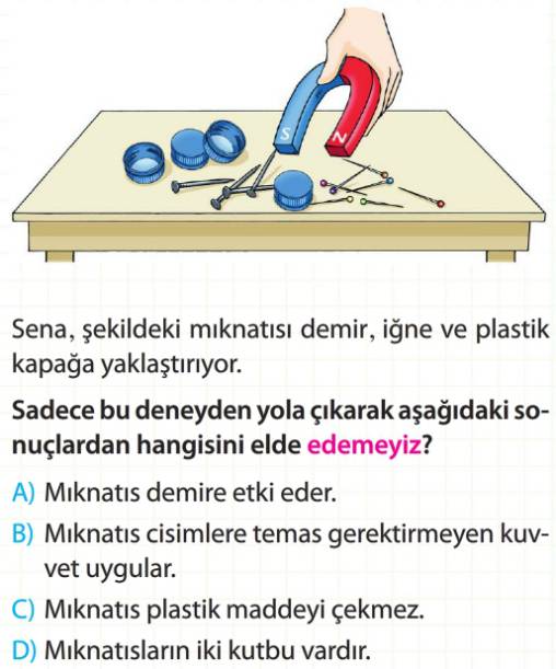 Soru: Kerem, çalışma masasındaki iğne ve plastik ataşların karıştığını görmüştür.