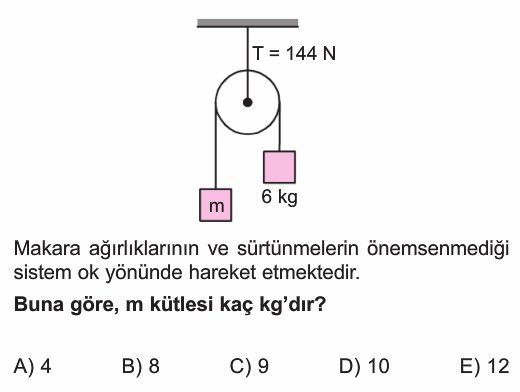 F = 10 N ve a = 5 m/s² olduğuna göre, cismin kütlesi: