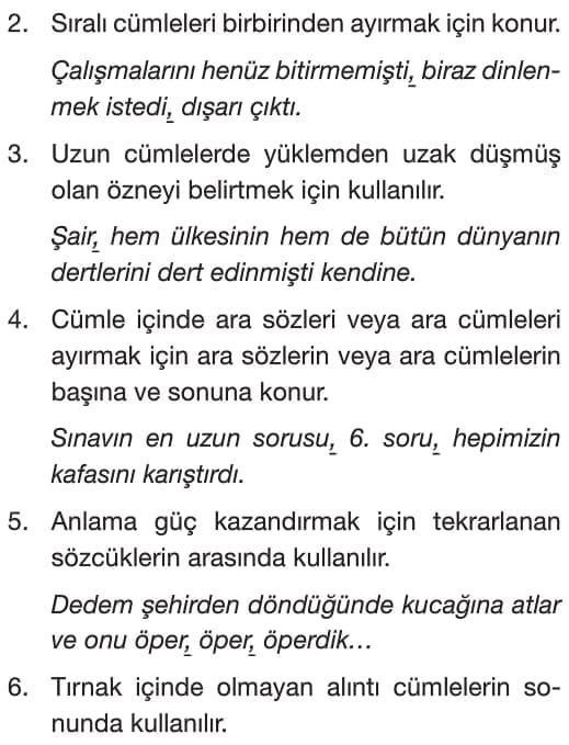 Virgül, tırnak içine alınmamış alıntı cümlelerin sonunda kullanılır.