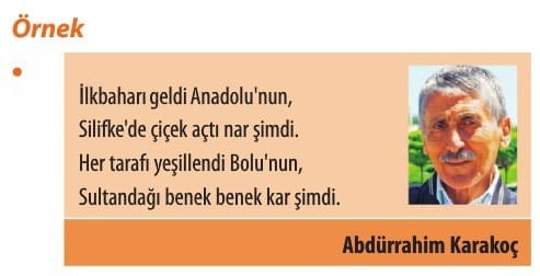 -› “Bu dörtlükte ne anlatılıyor?” sorusu sorulduğunda konunun “Anadolu’da bahar” olduğu anlaşılmaktadır.