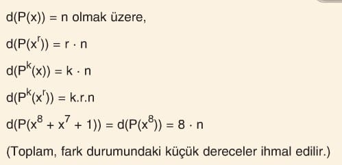 • P(x) = axn + bxn-1 + … + c ifadesinde x in en büyük değerine polinomun derecesi denir ve der[P(x)] veya d[P(x)] şeklinde gösterilir.