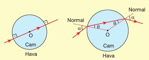 Küresel prizmalarda normal merkezden geçen doğrulardır. Bundan dolayı merkeze doğru gelen ışınlar kırılmaya uğramaz. Herhangi bir doğrultuda gelen ışın ise normali merkezden çizmek şartıyla kırılma kanunlarına göre kırılır.